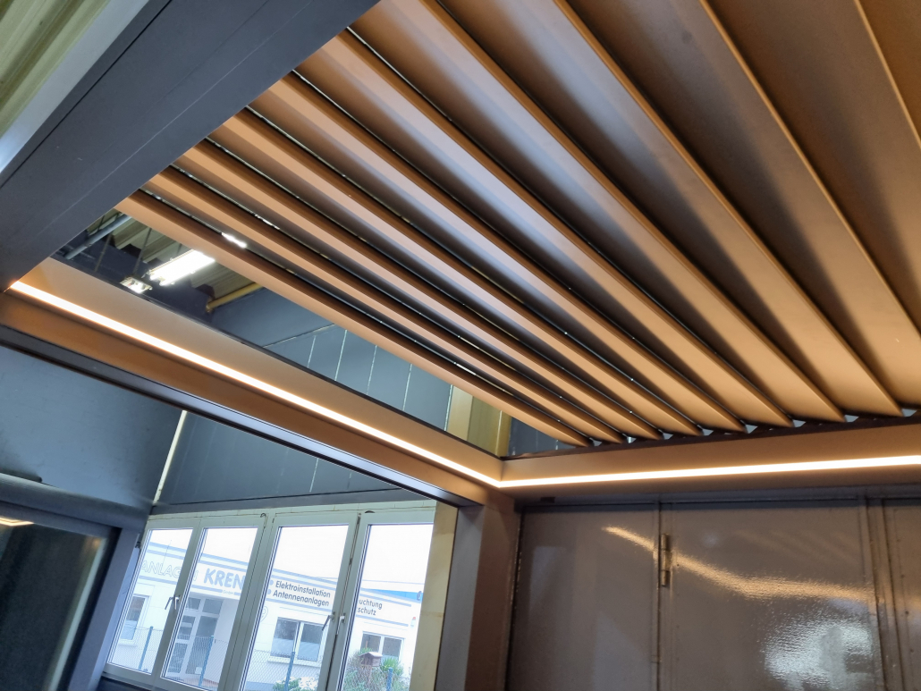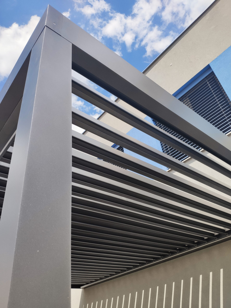 Das Lamellendach ist eine langlebige Aluminiumkonstruktion mit modernem Design.