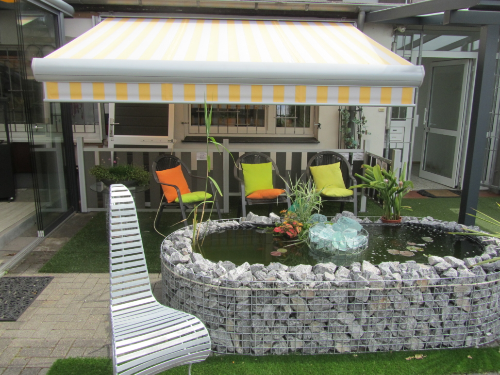 Unser Sonnenschutz bietet Ihnen außer den gebräuchlichen Gelenkarmmarkisen eine Beschattung nach Maß für Ihre offene oder geschlossene Überdachung.